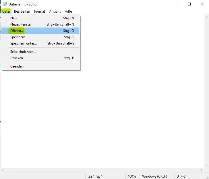 2. after you have opened the editor, click on "File" in the top left menu and then on "Open...".