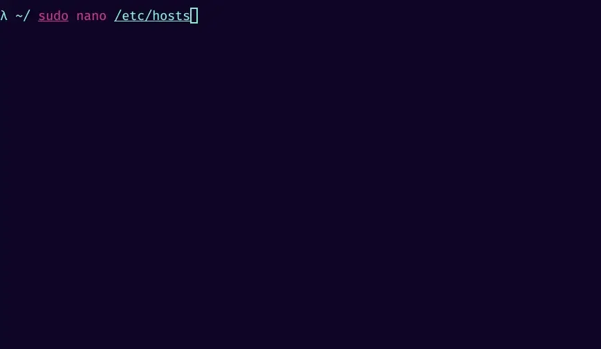 2. now a window should open. In this window type: "sudo nano /etc/hosts" and then press Enter. You will then be prompted to enter your password.