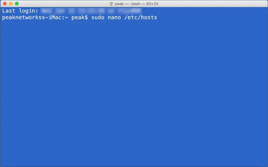 2. now a window should open. In this window type: "sudo nano /etc/hosts" and then press Enter. You will then be prompted to enter your password.