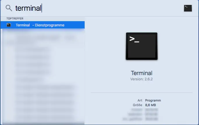 1. open the "Finder" with the keyboard combination: ⌘+spacebar and search for "terminal". Then press the Enter key.